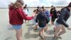 Après le jeu de piste dans le Mont, ils ont fait une balade les pieds dans l'eau dans la Baie et ont pu s'amuser un peu dans les sables mouvants.